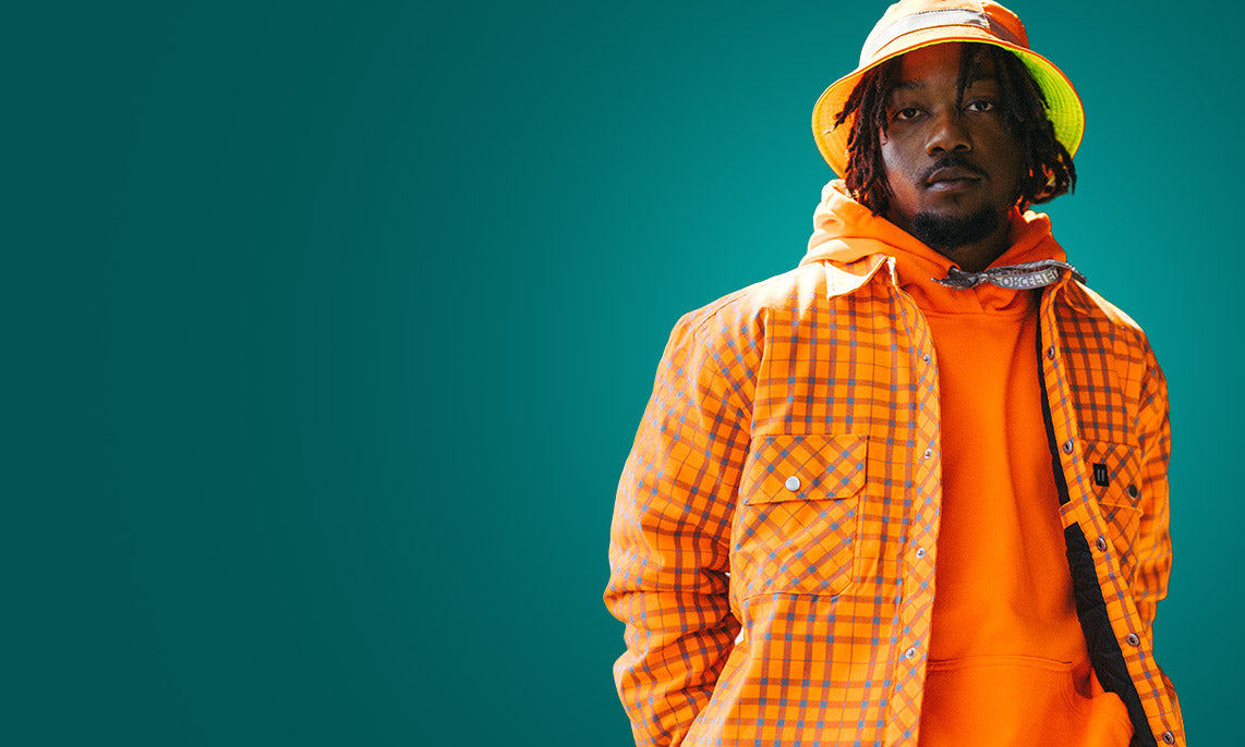 Vendor:LatoplastForcefield Orange Ombre Plaid Hooded Quilt-lined Shirt Jacket