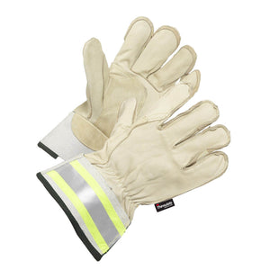 Cow grain Back and Palm, Split Leather Gauntlet with 4" Reflective Tape