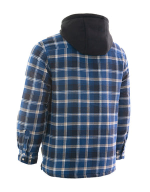 Forcefield Blue Hooded Plaid Quilt-Lined Flannel Shirt Jacket