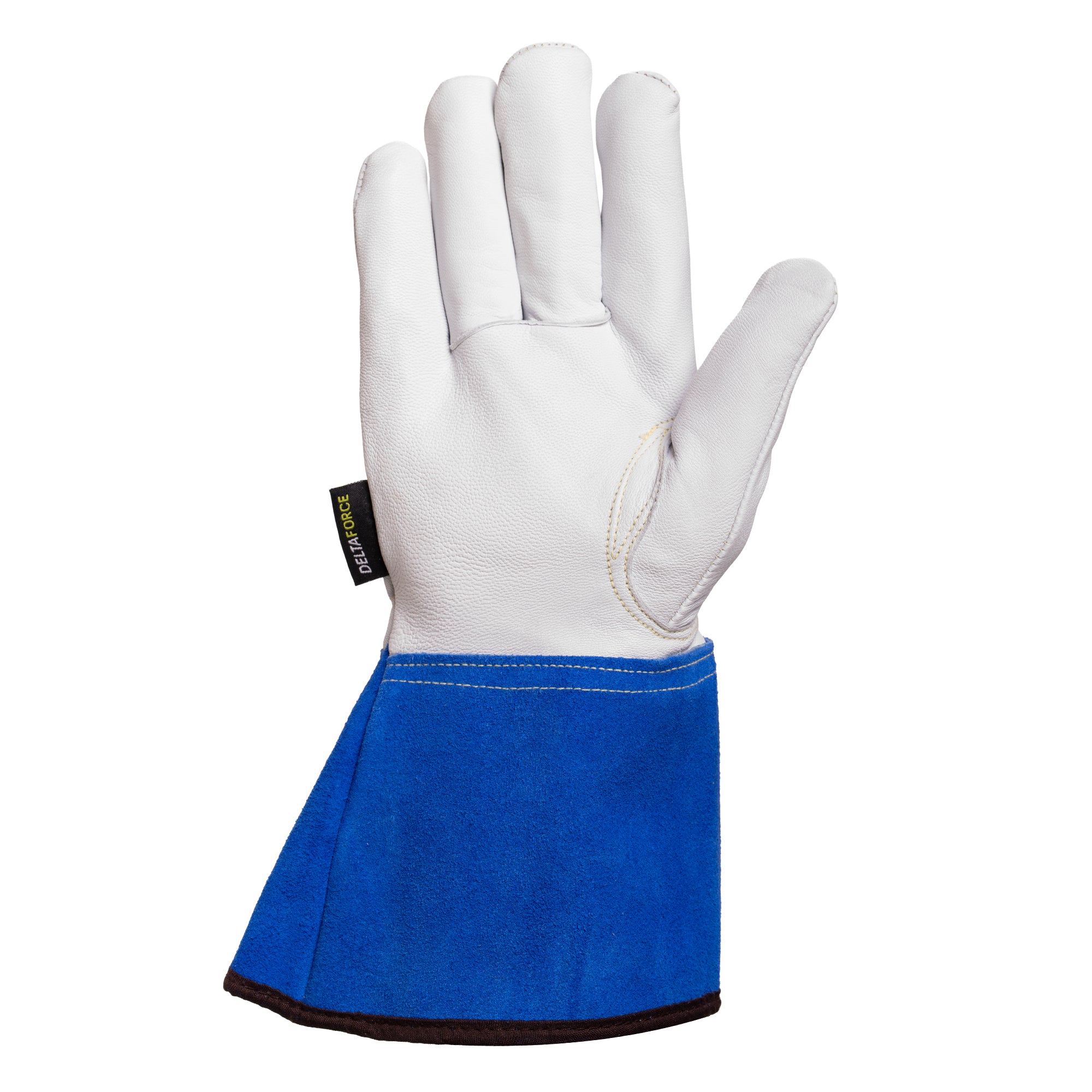 Introducing the Delta Force Kevlar® Stitched Goatskin Welder's Glove, featuring high abrasion resistance and tensile strength. Hand lined with Kevlar knit for comfort and cut resistance, sewn with Kevlar thread for heat resistance. With a keystone thumb for dexterity and a wide gauntlet-style cuff for ease of donning.