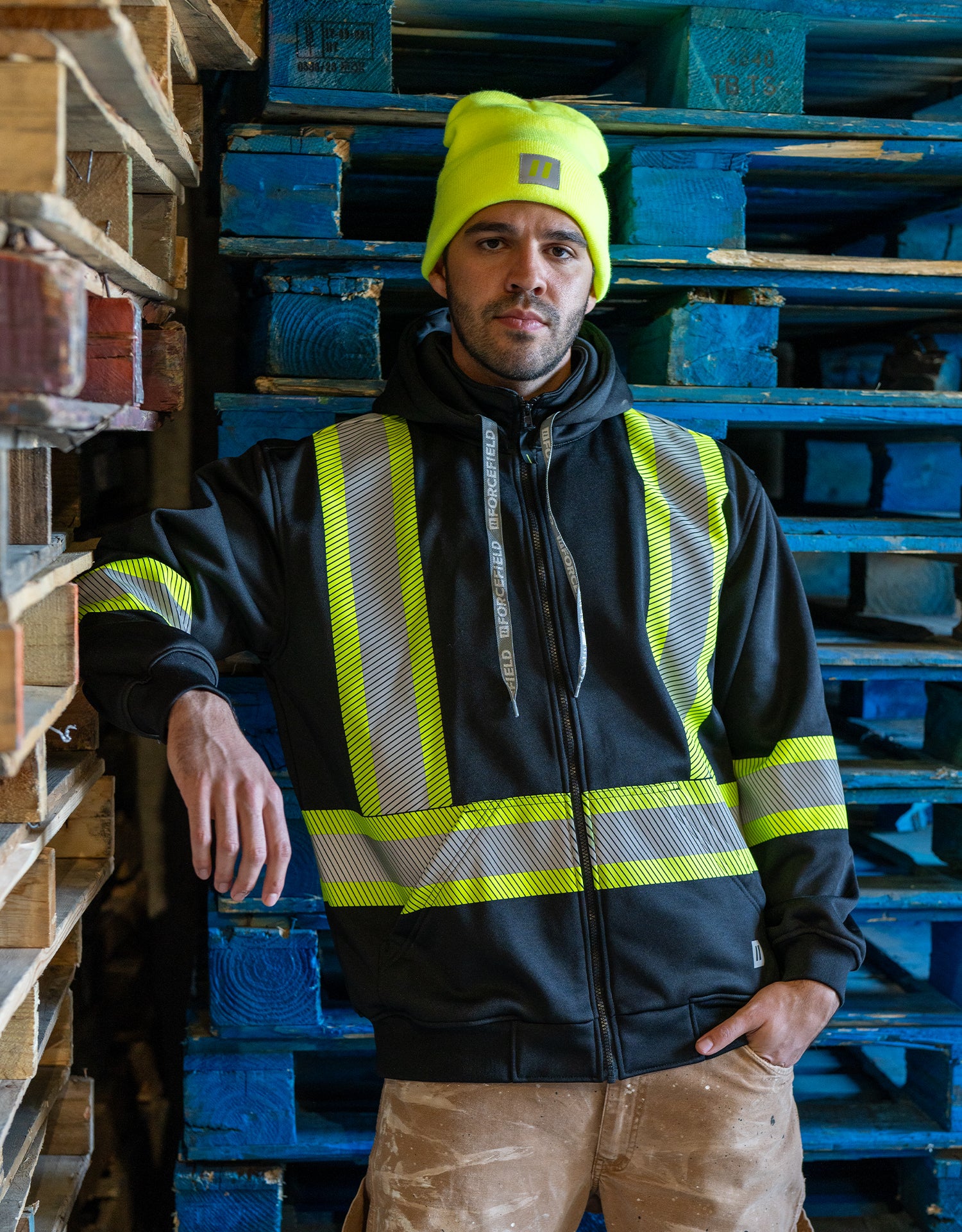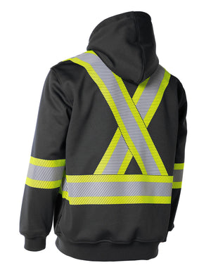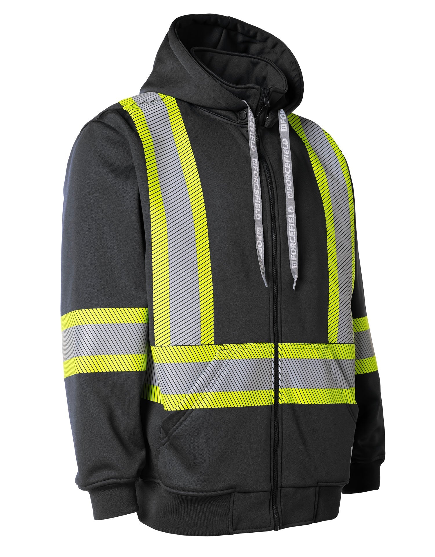Forcefield Deluxe Hi Vis Safety Hoodie with Segmented Reflective Tape and Detachable Hood