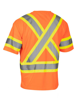 Forcefield Hi Vis Crew Neck Short Sleeve Safety Tee Shirt with Chest Pocket and Arm Bands