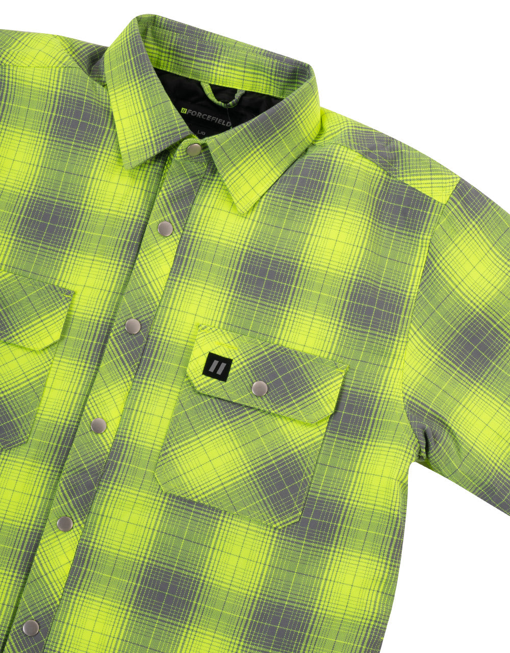 Forcefield Hi Vis Grey Shadow Plaid Quilted Flannel Shirt Jacket