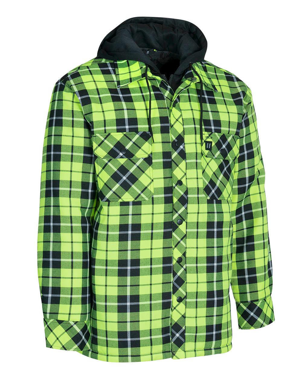 Forcefield Hi Vis Hooded Tartan Plaid Quilt-Lined Flannel Shirt Jacket
