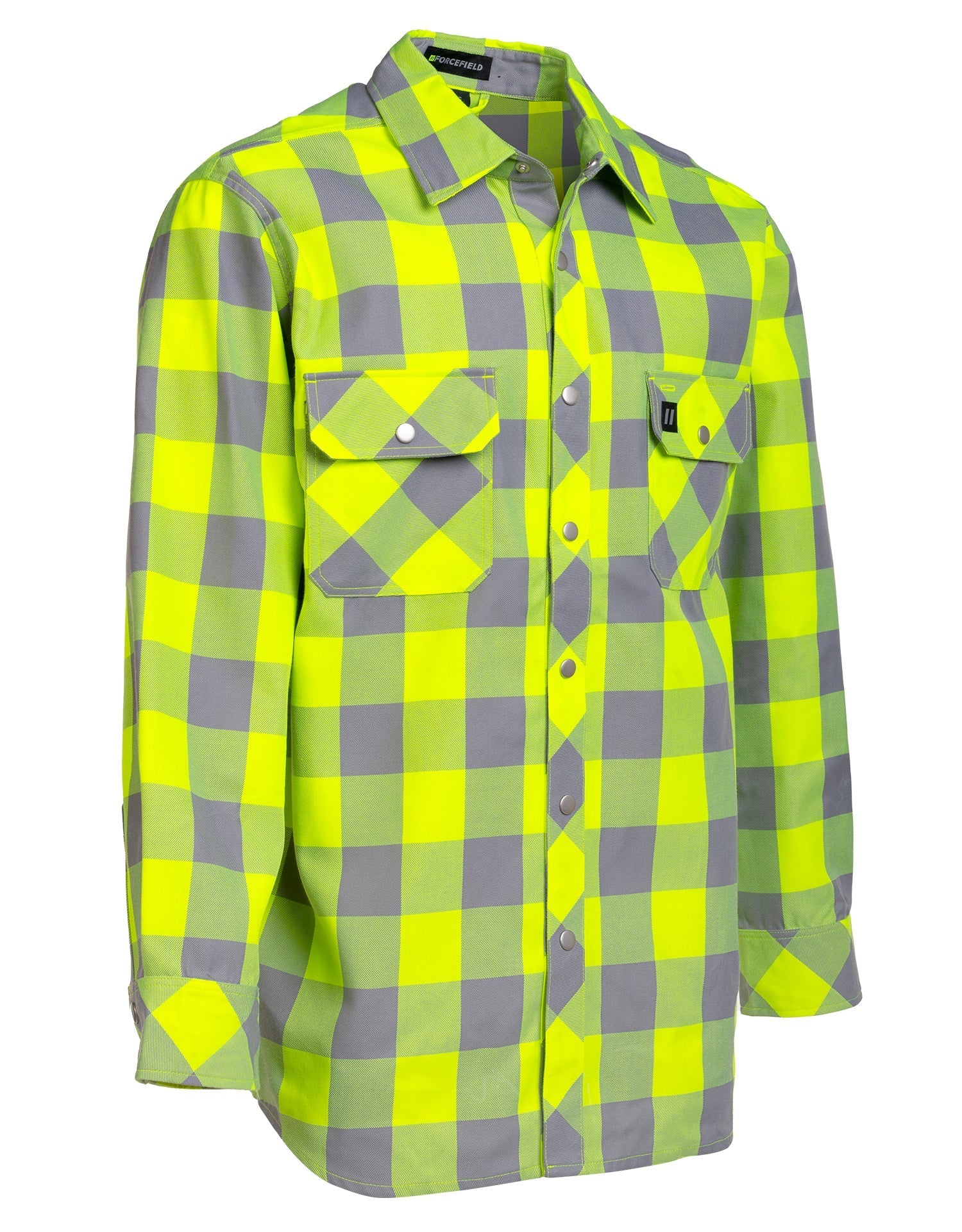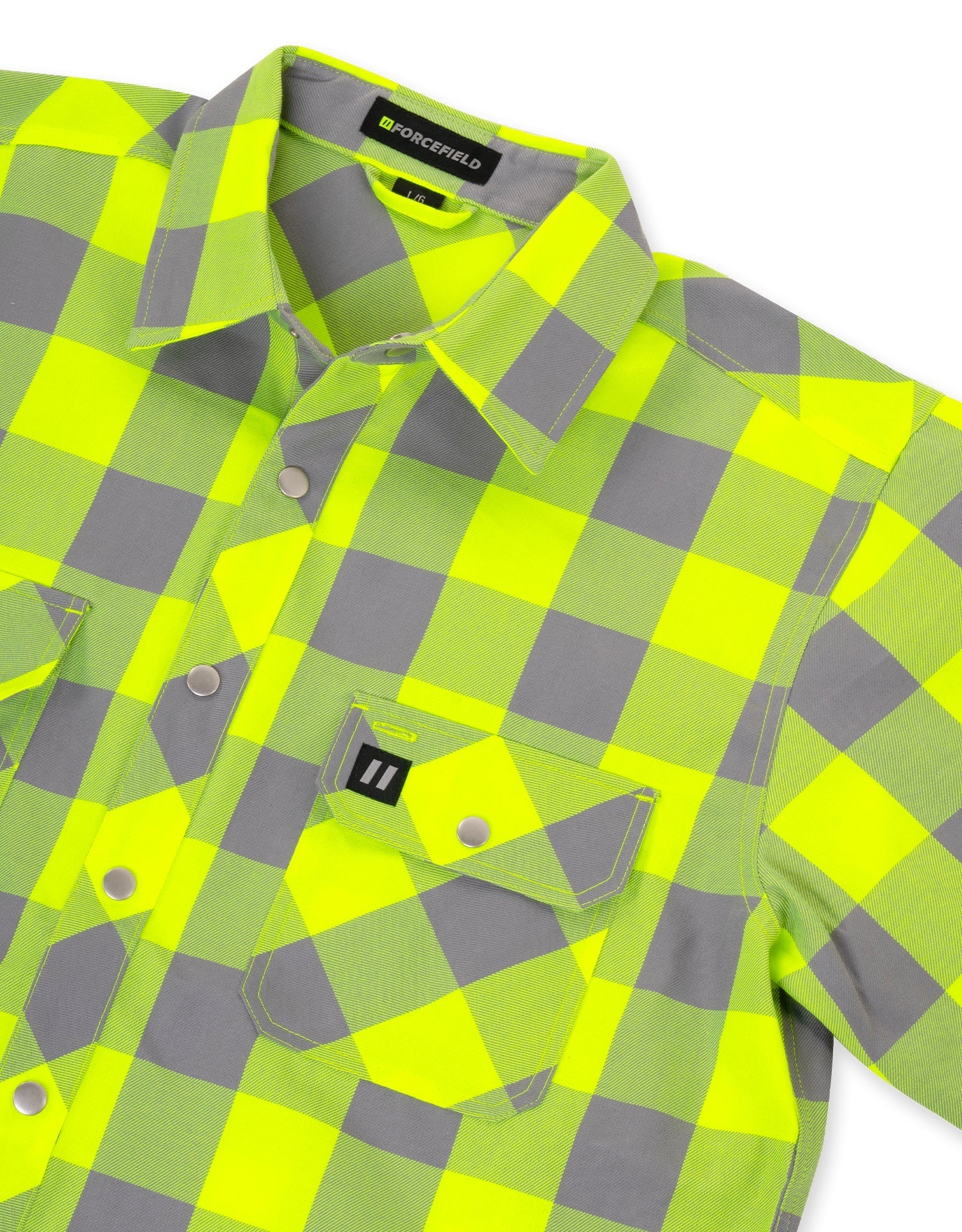 Forcefield Hi Vis Lime Buffalo Plaid Unlined Flannel Shirt