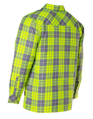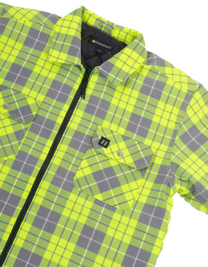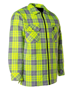 Forcefield Hi Vis Lime Plaid Quilted Flannel Shirt Jacket with Front Zip