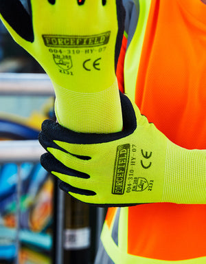 Forcefield Hi-Vis Nylon Work Glove, Palm Coated with Crinkle Latex