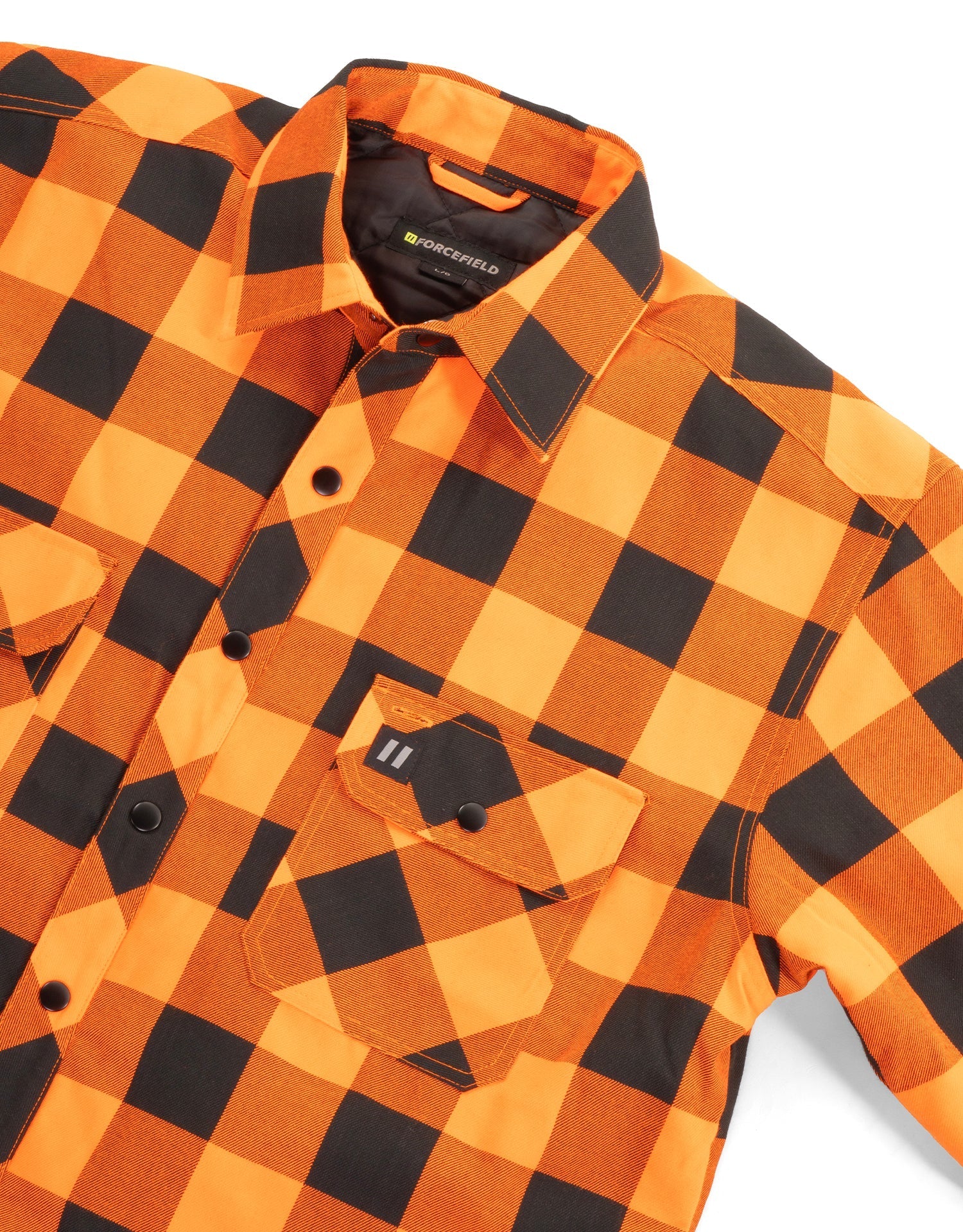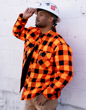 Forcefield Hi Vis Orange/Black Buffalo Plaid Quilted Flannel Shirt Jacket