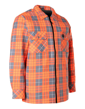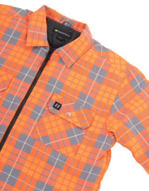 Forcefield Hi Vis Orange Plaid Quilted Flannel Shirt Jacket with Front Zip
