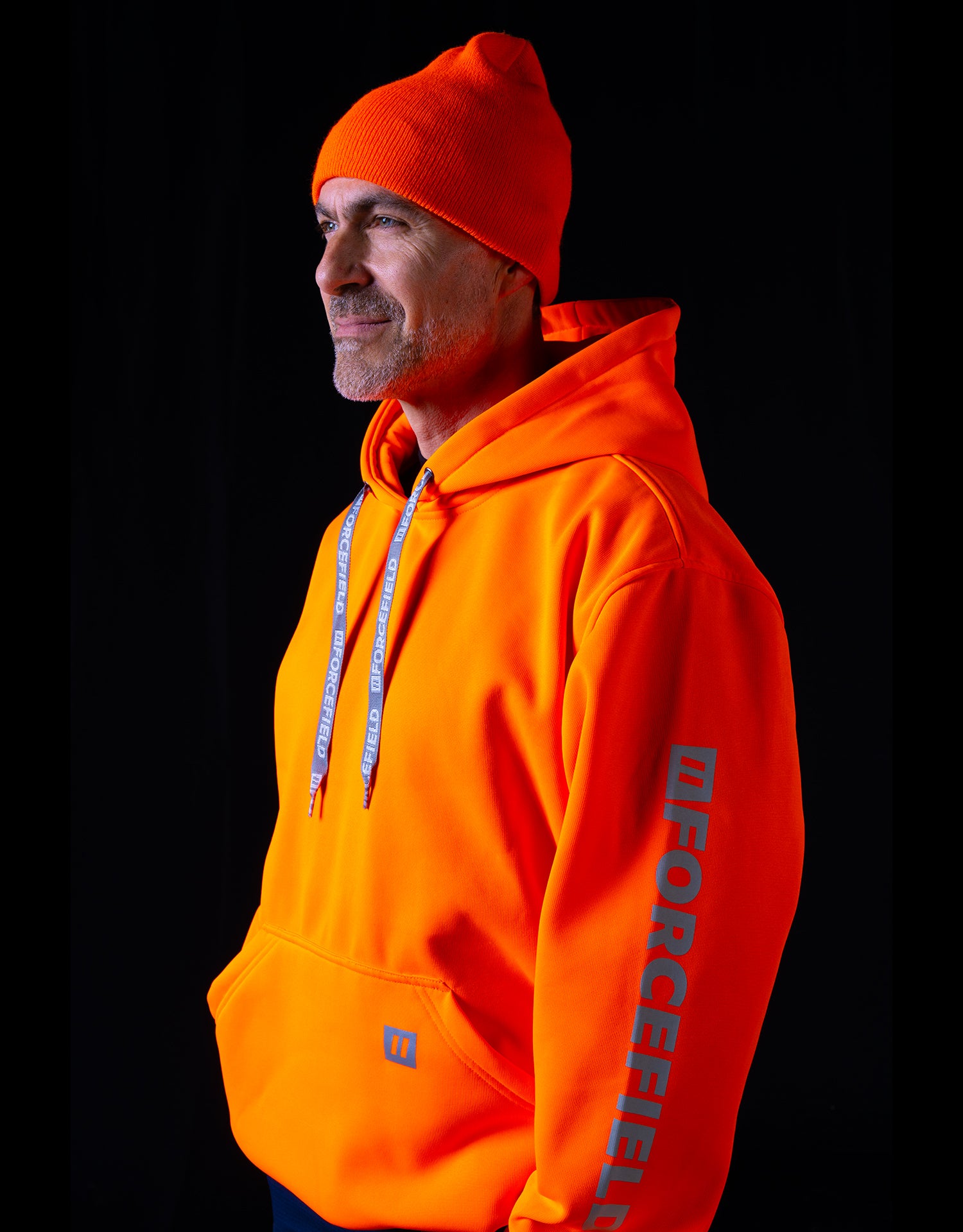 Forcefield Hi Vis Orange Pullover Forcefield Logo Sleeve Graphic Hoodie
