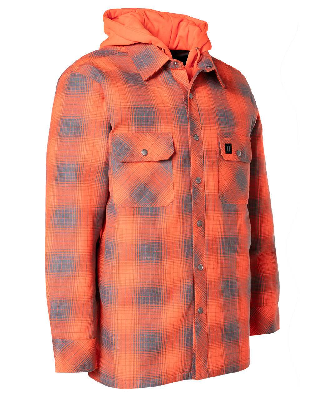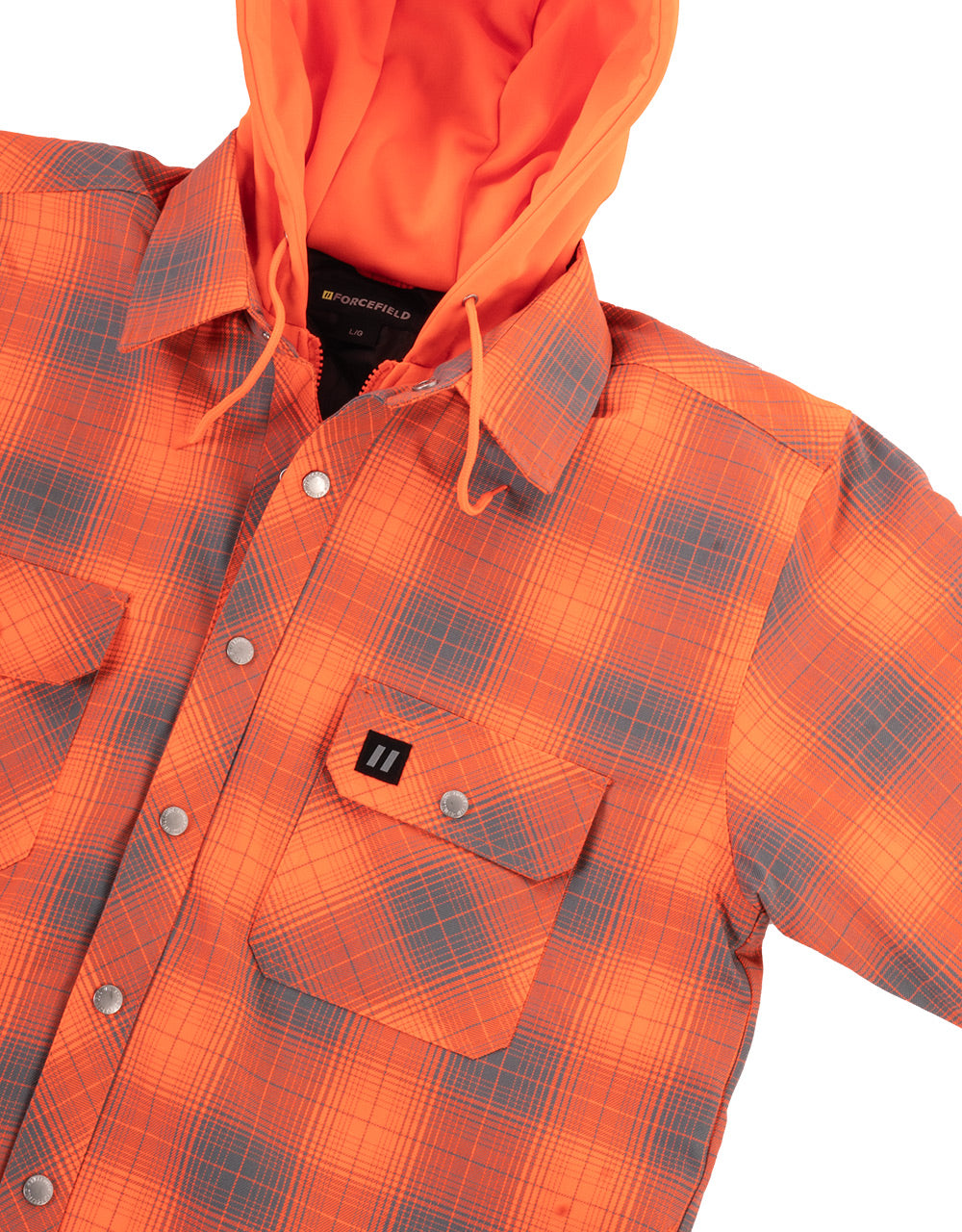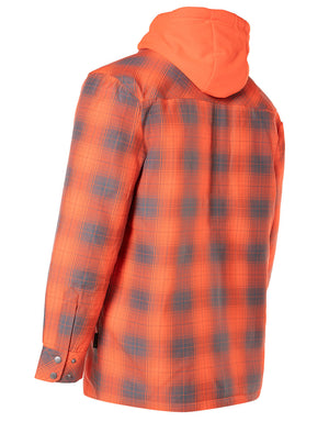Forcefield Hi Vis Orange Shadow Plaid Hooded Quilt-Lined Flannel Shirt Jacket