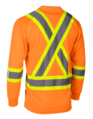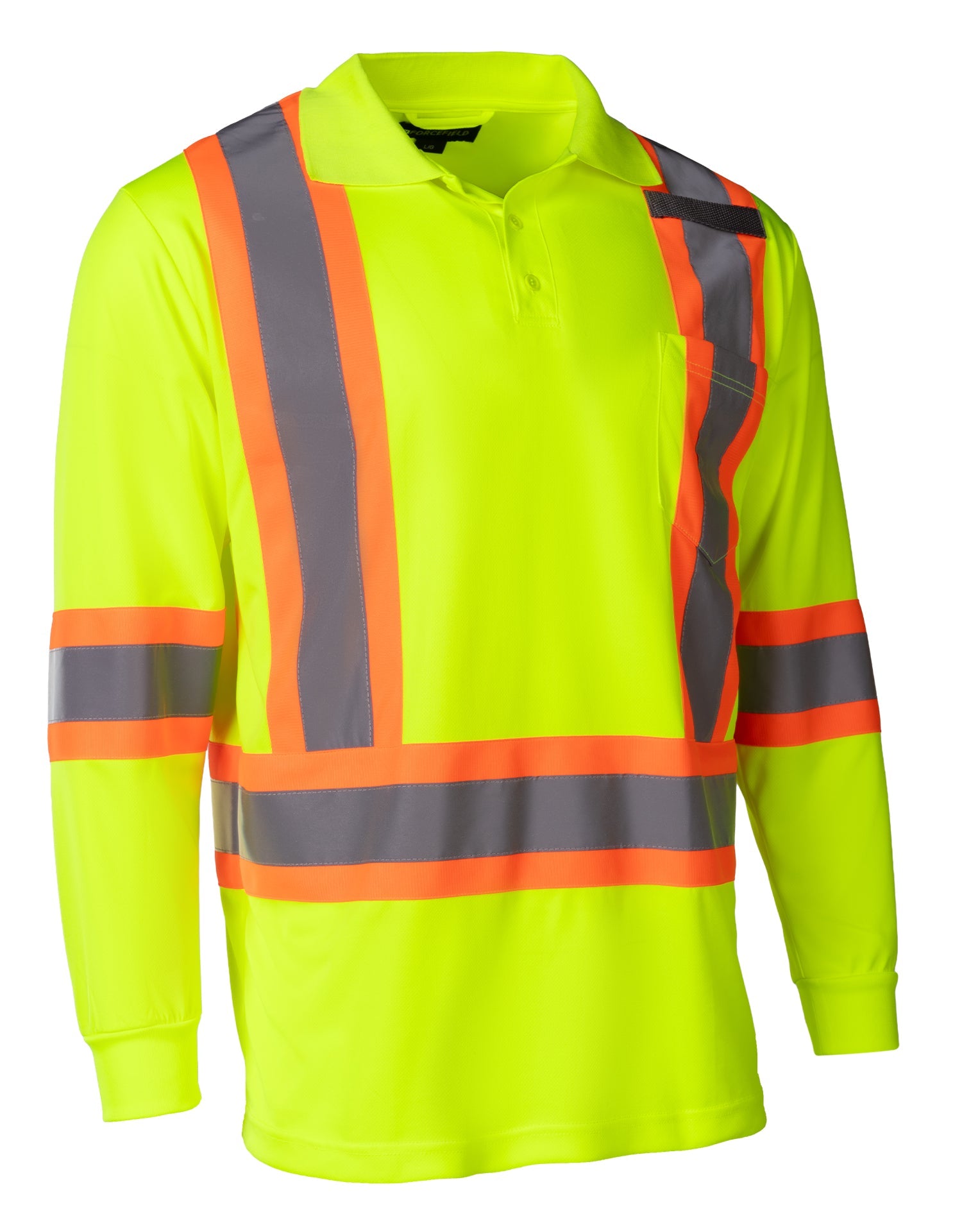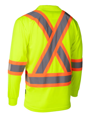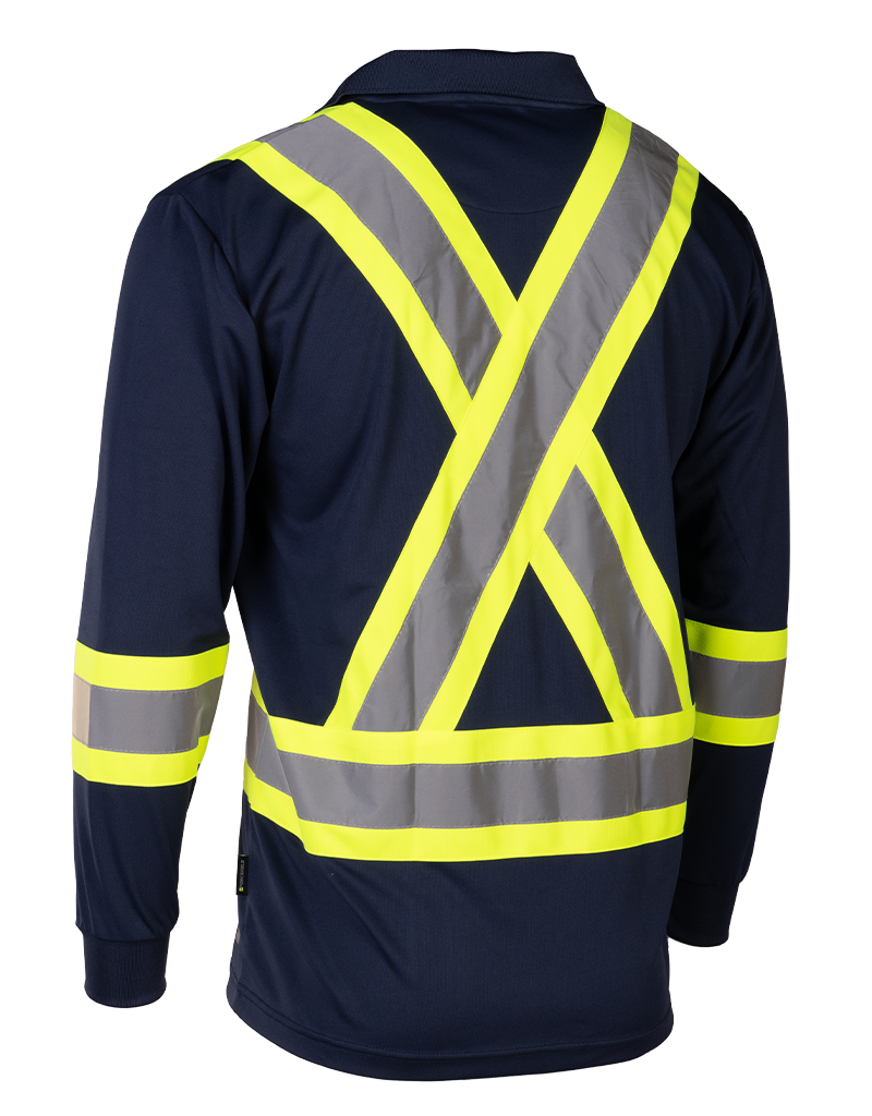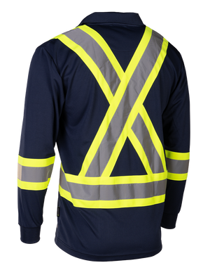 Built for demanding job sites, this Hi-Vis Long Sleeve Polo Tee delivers all-day comfort and dependable visibility. Made from breathable 100% polyester birdseye knit, it stays lightweight and moisture-wicking through long shifts. High-contrast 4” reflective tape provides 360° visibility, while the chest pocket and radiophone clip strap add practical, job-ready functionality without restricting movement.