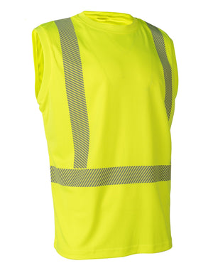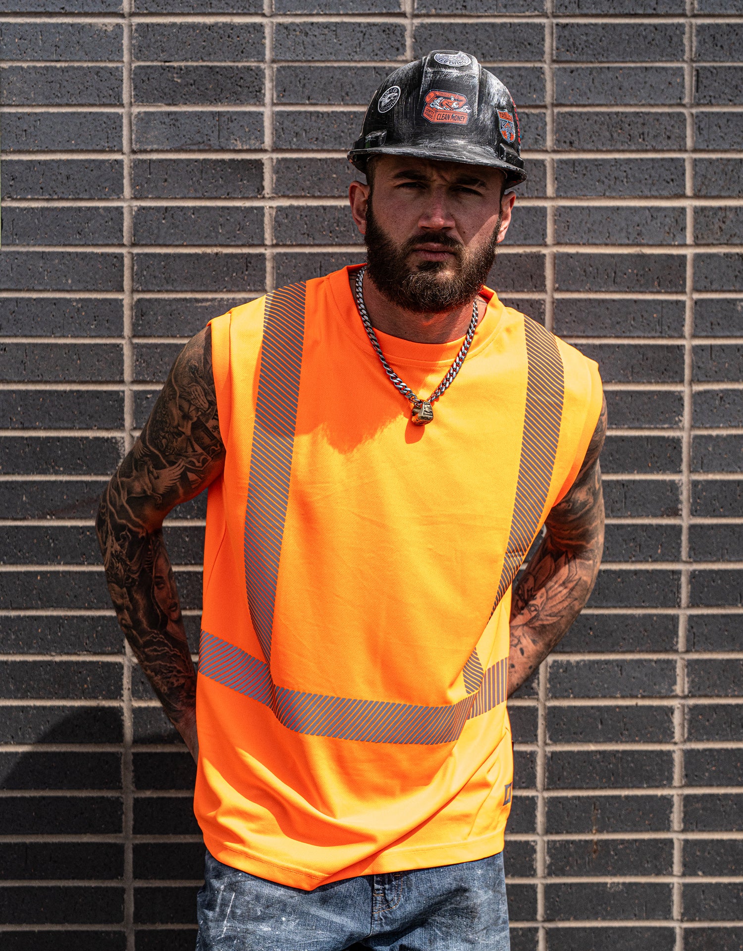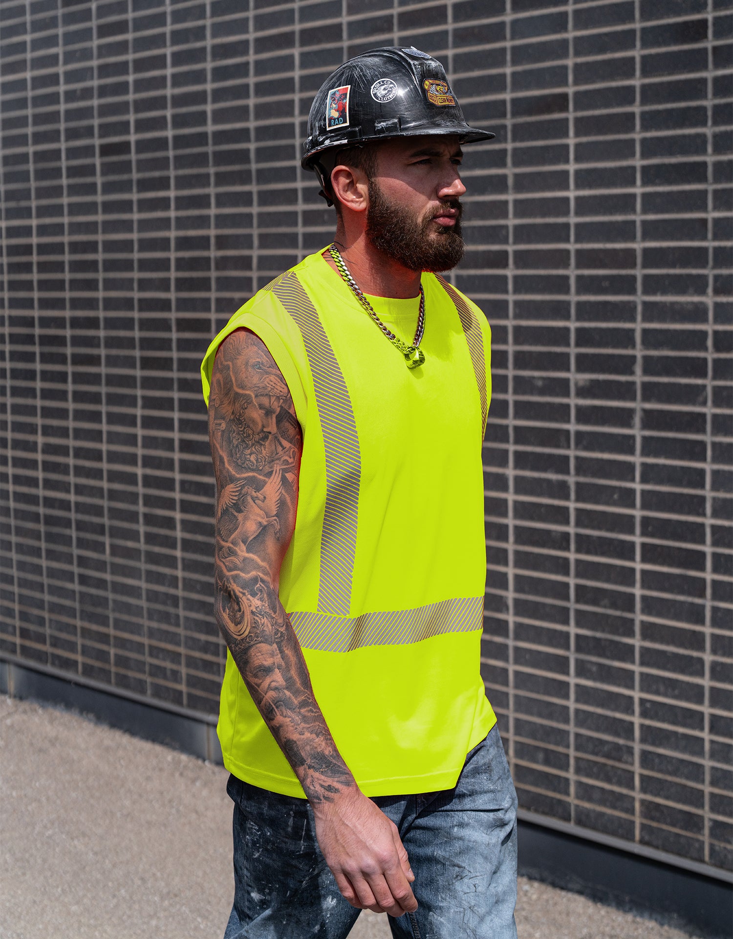 Stay comfortable and protected with our Hi-Vis Sleeveless Tee. Made with breathable fabric, segmented reflective tape for flexibility, and a handy chest pocket, built for demanding environments.