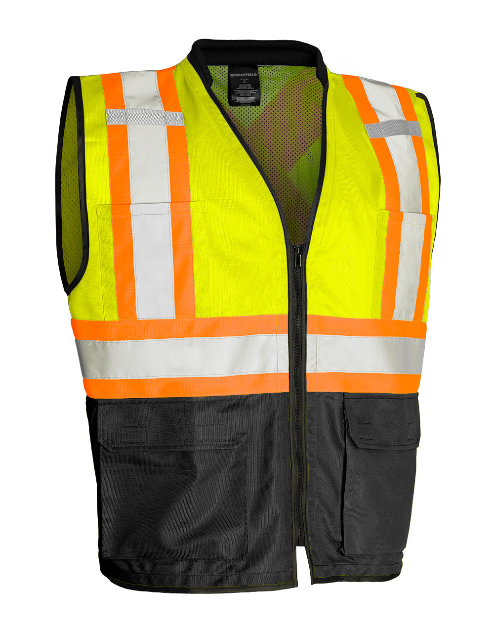 Forcefield Hi Vis Traffic Safety Vest with Zipper Front, Tricot Polyester