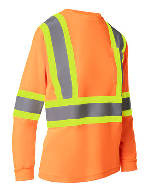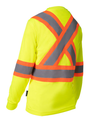 Forcefield Women's Hi Vis Crew Neck Long Sleeve Safety Tee Shirt with Chest Pocket