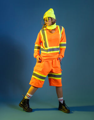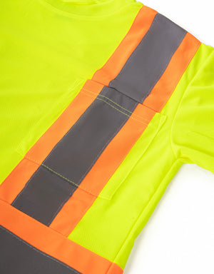 Introducing the long-sleeve edition of our signature safety tee. This crewneck variant boasts vivid hues, ensuring utmost visibility with its expansive 4” silver retro-reflective tape and striking color combinations. The long-sleeved safety tee also features a prominent chest pocket, perfect for stashing pens, glasses, or other essentials you need at arm's reach.