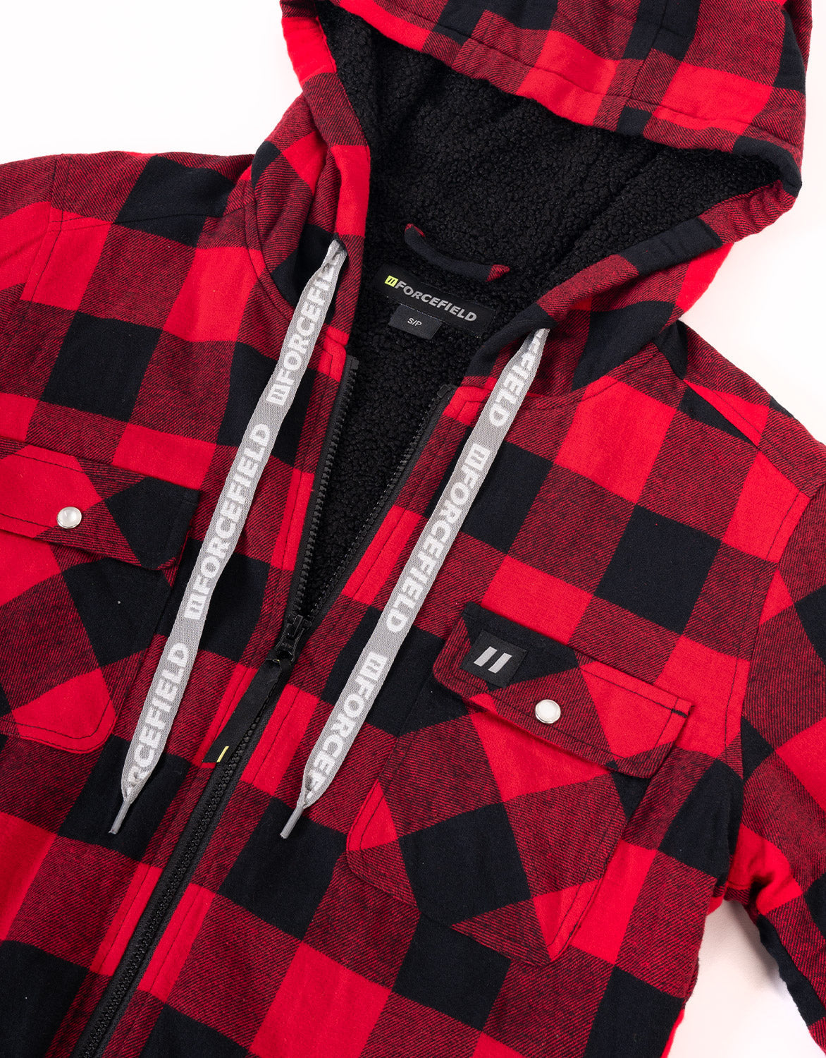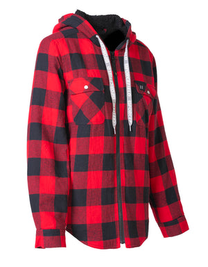 Forcefield Women's Hooded Sherpa-Lined Buffalo Plaid Flannel Shirt jacket