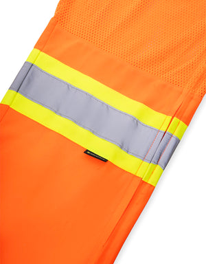 Experience comfort and safety with our Women's Hi-Vis Tricot Traffic Pants. Crafted from 100% lightweight polyester tricot knit, they're ideal for summer work. Designed with knee vents for breathability, 2-way side leg zips for easy boot accommodation, convenient back patch pockets, and an elastic waistband with a cinch for a secure fit. Perfect for staying visible and comfortable on the job.